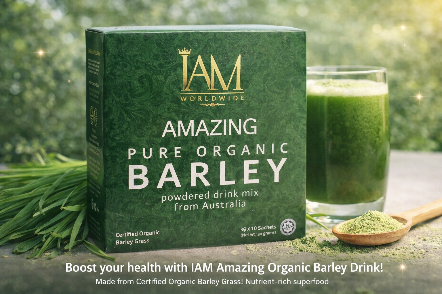 IAM Amazing Organic Barley Drink is a certified organic superfood from Australia. This nutrient-rich powdered drink mix comes in 10 convenient sachets.